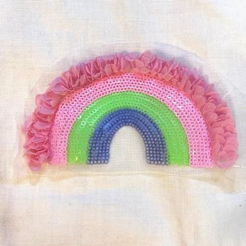 チュールの花びらのようなモチーフからレインボーになっています 縫い付けのパッチです!